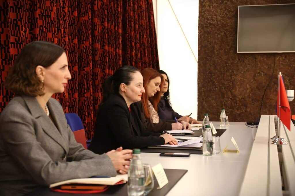 Ai zhvilloi një takim kortezie me homologen shqiptare, Ministren e Shtetit dhe Kryenegociatoren për BE-në, znj. Majlinda Dhuka, të shoqëruar nga Drejtoresha e Përgjithshme e Agjencisë Shtetërore të Programimit Strategjik dhe Koordinimit të Ndihmës (SASPAC), znj. Eridana Çano.