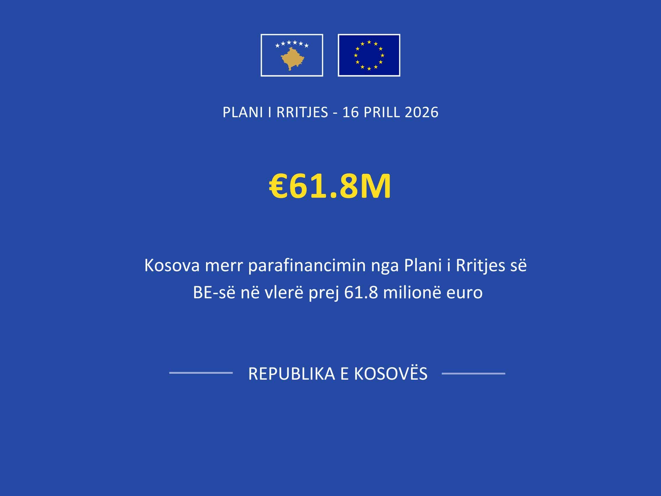 Sot Komisioni Evropian ka filluar transferimin e 61.8 milionë eurove për Kosovën si parafinancim në kuadër të Planit të Rritjes, pas ratifikimit të marrëveshjeve nga Kuvendi dhe dorëzimit të dokumentacionit të nevojshëm nga Qeveria.