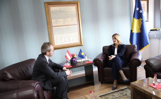 Prishtinë, 24 Janar 2018 –Ministrja Hoxha, në takim me ambasadorin e Republikës së Austrisë në Republikën e Kosovës, Z. Pfandler, ka theksuar se strategjia integruese e BE-së për Ballkanin Perëndimor, duhet të jetë gjithëpërfshirëse dhe nuk duhet ta anashkalojë Kosovën.