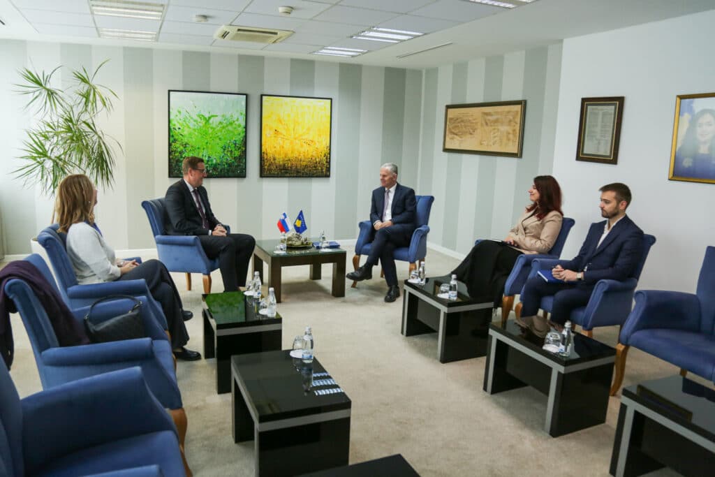 Zëvendëskryeministri i parë në detyrë për Integrim Evropian, Zhvillim dhe Dialog i Republikës së Kosovës, Besnik Bislimi, mirëpriti në takim ambasadorin e ri të Republikës së Sllovenisë në Kosovë, Borut Blaj.