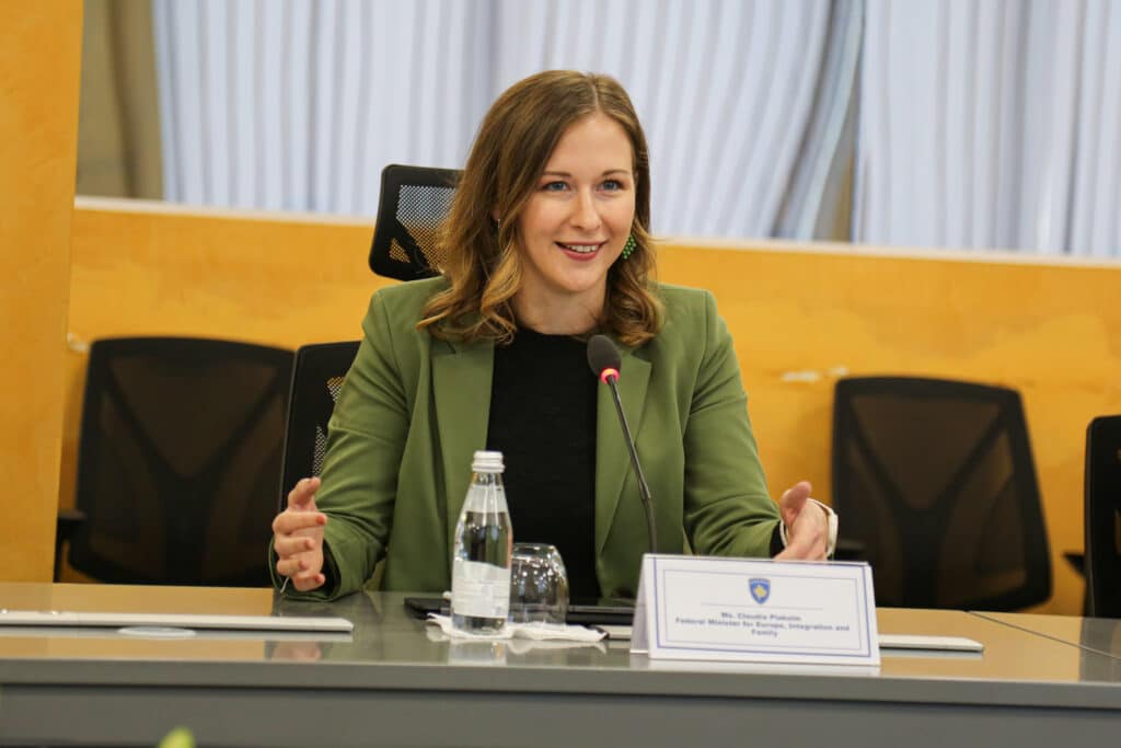 Zëvendëskryeministri i parë në detyrë për Integrim Evropian, Zhvillim dhe Dialog i Republikës së Kosovës, Besnik Bislimi, mirëpriti në takim ministren për Evropë, Integrim dhe Familje të Austrisë, Claudia Plakolm dhe Sekretaren e Shtetit për Çështje Evropiane, të Drejtë Ndërkombëtare, Mbrojtje të Interesave dhe Diplomaci Ekonomike të Sllovenisë, Neva Grašič.