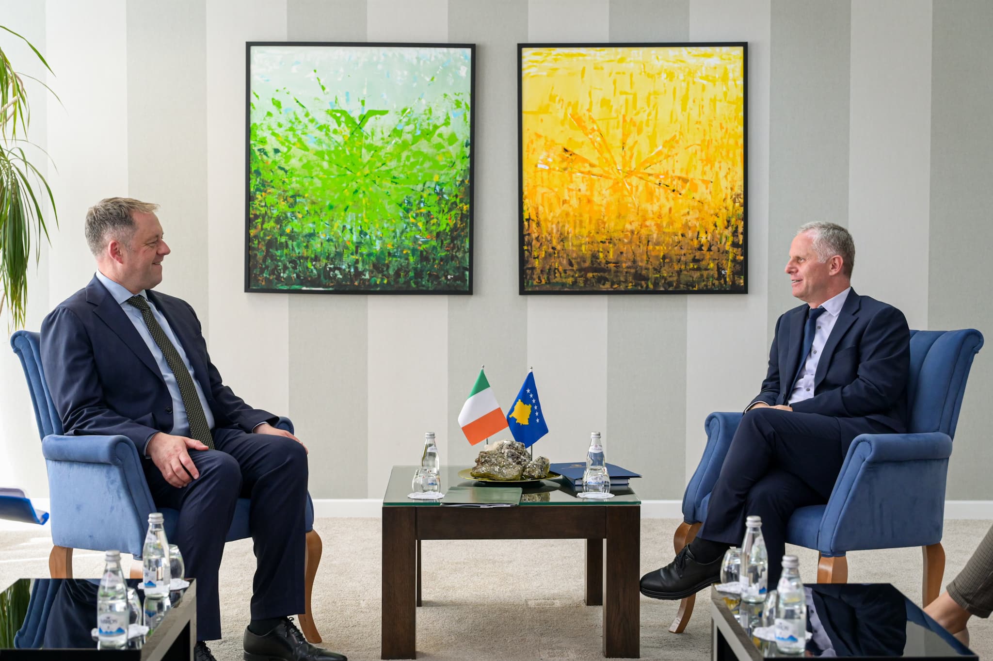Zëvendëskryeministri i parë në detyrë për Integrim Evropian, Zhvillim dhe Dialog i Republikës së Kosovës, Besnik Bislimi, mirëpriti në takim ministrin për Çështje Evropiane dhe Mbrojtje të Irlandës, Thomas Byrne. Ministri Byrne shoqërohej në këtë takim nga ambasadori i Irlandës për Kosovë, Ragnar Almqvist.