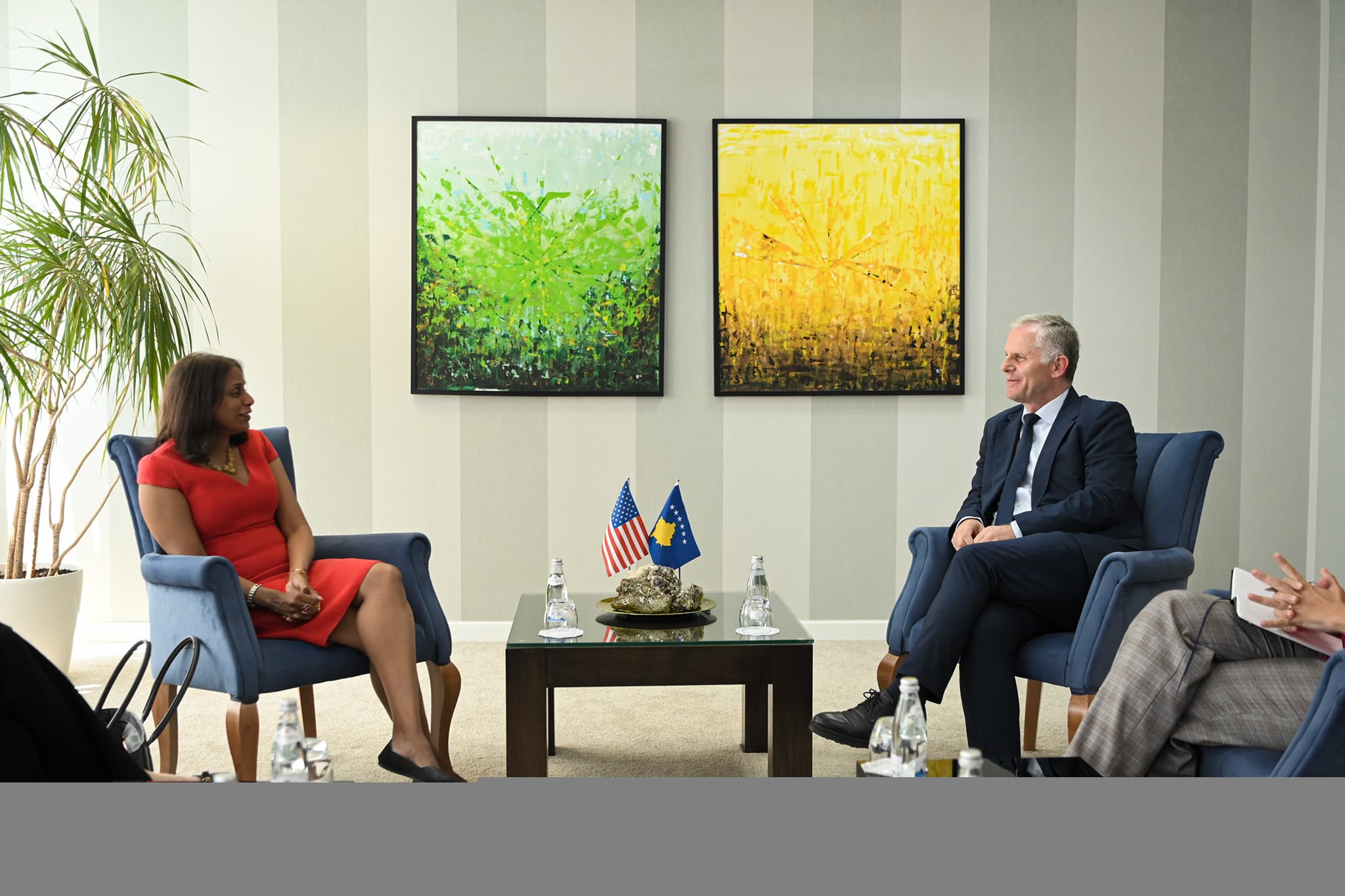 Zëvendëskryeministri i Parë në detyrë për Integrim Evropian, Zhvillim dhe Dialog i Republikës së Kosovës, Besnik Bislimi, mirëpriti ditën e sotme në takim të Ngarkuarën me Punë në Ambasadën e SHBA-së në Kosovë, Anu Prattipati.