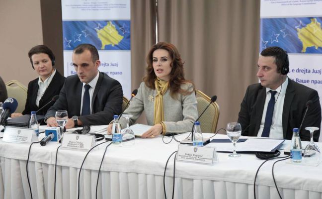 Priština, 17. decembar 2013 – Ministarka za Evropske Integracije, Vlora Çitaku je učestvovala na okruglom stolu o ulozi i promovisanju upotrebe službenih jezika na Kosovu, gde ovom prilikom je dodeljena nagrada za najbolji novinarski rad, za najbolju priču u vezi poštovanja jezika.