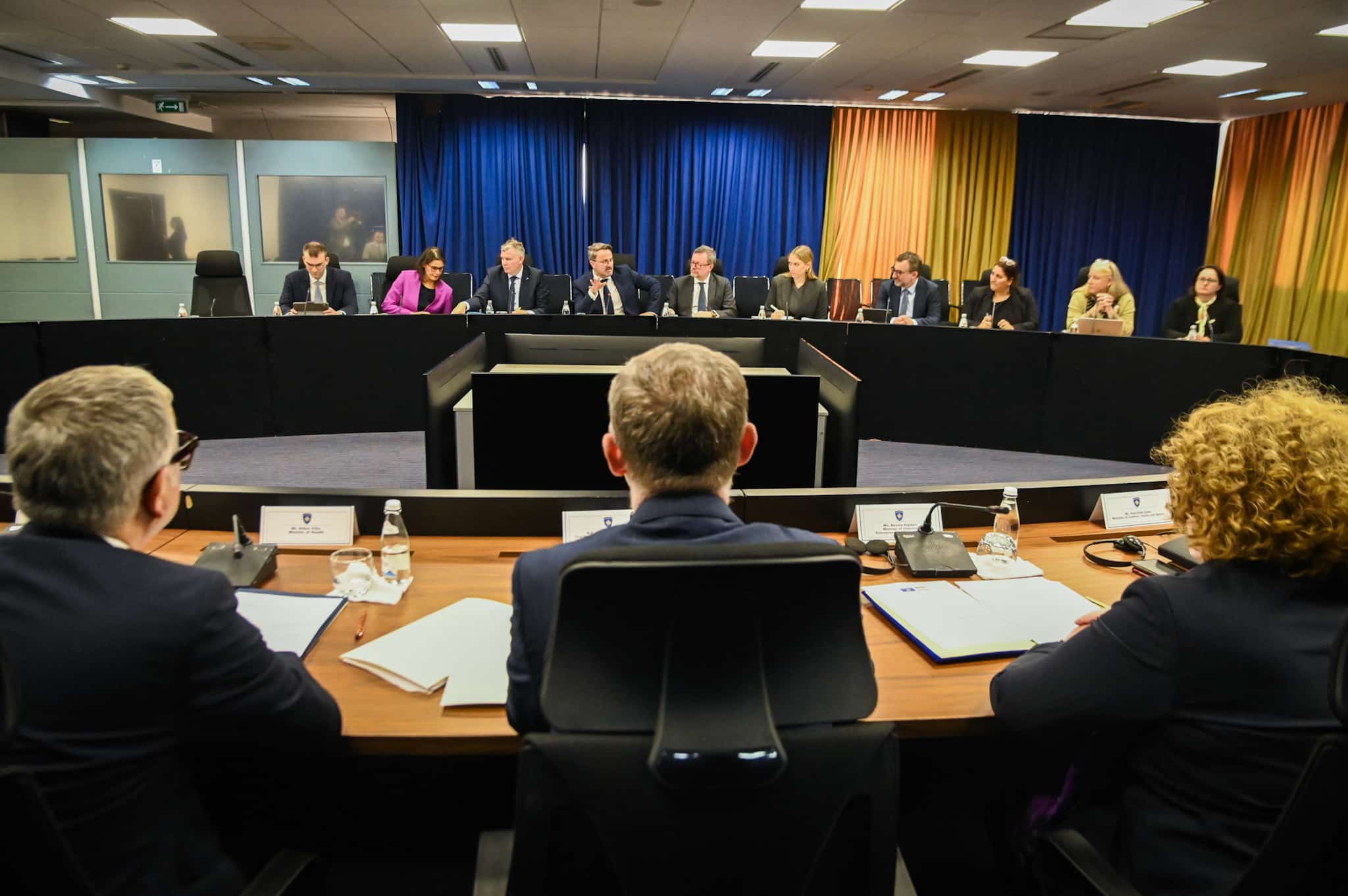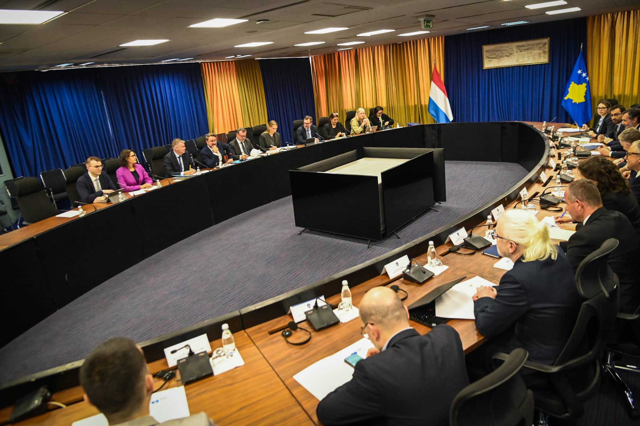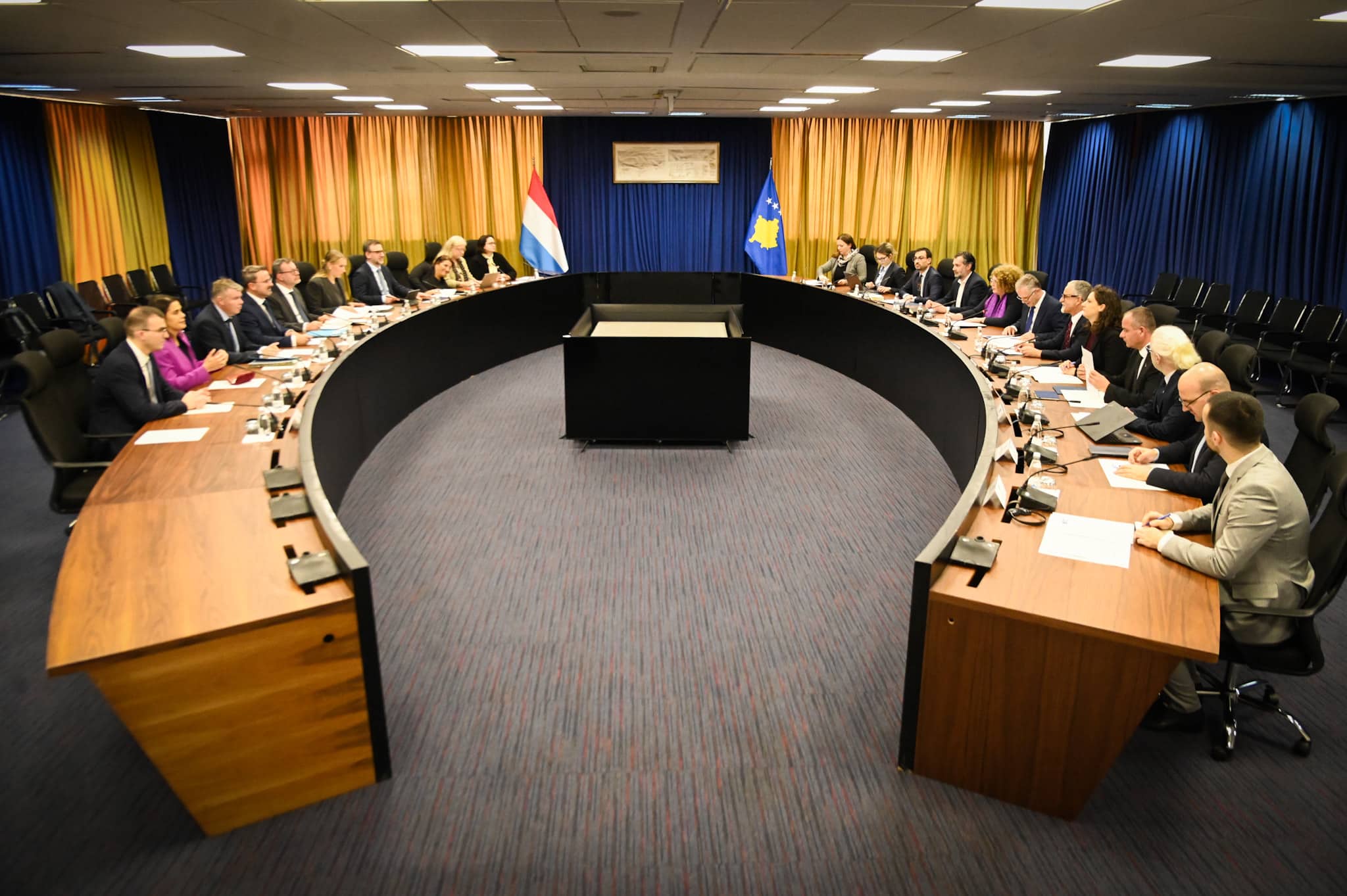 Nakon njihovog sastanka, nastavljen je zajednički sastanak delegacija, gde su zamenika premijera Bislimija pratili Ministar zdravlja Arben Vitija, Ministarka ekonomije Artane Rizvanolli, Ministarka industrije, preduzetništva i trgovine Rozeta Hajdari, Ministar kulture, omladine i sporta Hajrulla Çeku i zamenik ministra Unutrašnjih poslova Bardhyl Dobra, dok je zamenik premijera Bettel bio u pratnji otpravnika poslova Luksemburga u Kosovo, Eric Dietz.