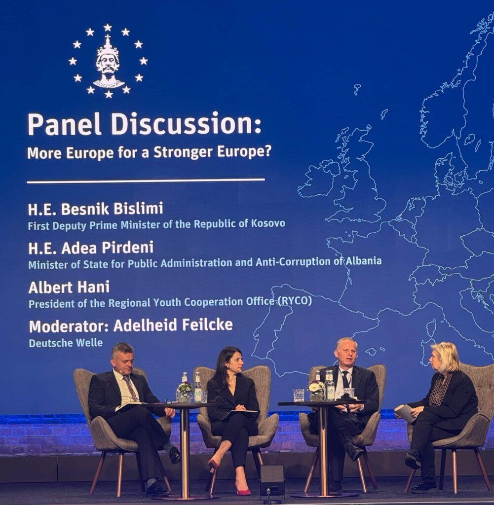 Prvi zamenik premijera na dužnosti Republike Kosovo, Besnik Bislimi, učestvuje na događajima koji se organizuju u okviru Međunarodne dodele nagrade Charlemagne u Ahenu, gde je bio govornik na panelu pod nazivom „Više Evrope za jaču Evropu?“.